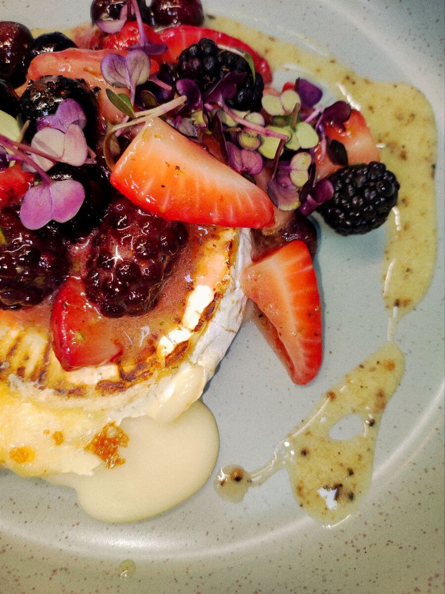 Не так давно, под вечерний бокал мартини, для меня открылся новый вкус, который навязчиво преследовал меня несколько недель. В этом сочетании все: сладость ягод и меда, горечь грейпфрутового сока и вермута, а так же землистость трюфеля. Соус к сыру: Сок смешать с медом, поставить на плиту, уварить в половину, добавить вермут, уварить до состояния соуса. В самом конце добавить трюфельную пасту и хорошо перемешать. Сыр: Камамбер обжарить на средне-слабом огне до жидкого центра. Выложить на тарелку. Ягоды быстро обжарить, добавить цедру, залить соусом, снять с огня, полить готовый сыр. Украсить кресс сакурой. С каждым ❤️ мир становится красивее, а с каждым репостом еще и вкуснее😋 Во имя ножа, сыра и бальзамического уксуса 🙏 #соус #сырная закуска #к сыру #соус от шефа #рецепт от шефа