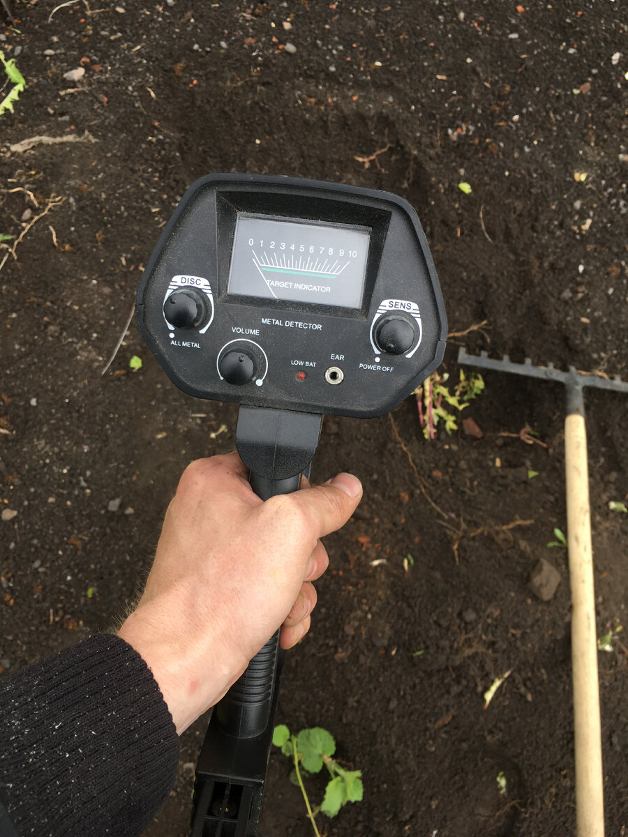 Купил самый дешёвый металлоискатель для металлолома. Попытался настроить на цветной металл, но он все равно видит чёрный. Много гвоздей в месте, где копал и пришлось выбирать всё. Лопата и грабли мне помогали проредить землю. Нашёл какие-то гири. Очень увесистые. Сначала обрадовался, что их будет много. А в яме только три штуки. Ещё труба была или балванка. Но в основном мелкие куски, гвозди и болты. Железо решил сложить и сдать на приемке. Нашёл по 24,2 рубля за килограмм. Были и монеты советские. Царских в этот раз не нашёл, но они были в прошлый раз. Их нужно почистить и можно будет узнать редкость по годам. В земле они сильно портятся. Особенно современные из чёрного металла. Медная лежала с чёрным металлом и слиплась. Эта сильно позеленела. Пуговица артиллериста стерлась, но непонятно по какой причине. Все вышло из мешков всего 68 кг. И получил 1560. Буду искать ещё.