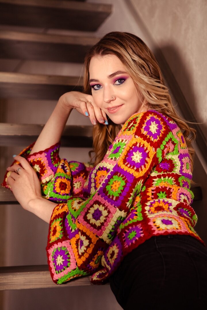 Джемпер связан квадратными мотивами, в центре которых вяжется цветочный мотив. Связан на заказ. Похожий джемпер на Саре Джессике Паркер...Эпизод из сериала Обзор джемпера - видео с Youtube