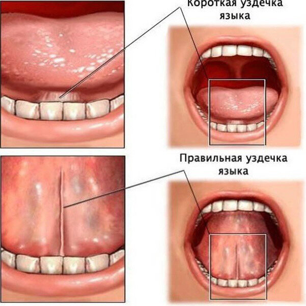 Уздечка языка. Подрезать или тянуть? Уздечка языка – это фибромукозная ткань, ограничивающая движение языка, похожа на фасциальную ткань куриной грудки, которую невозможно растянуть, а можно только порвать (в случае с уздечкой языка - подрезать). Из этого суждения мы делаем вывод, что уздечка не тянется. Если логопеды ее и тянут, то создают на ней микронадрывы, а это каждый раз боль для ребёнка. Изменение уздечки - врожденная аномалия, которая формируется еще на 10-12й неделе беременности. Короткая уздечка ограничивает подвижность языка, что приводит к критическому воздействию на функции полости рта. Нарушение называется анкилоглоссия, и отмечается в МКБ-10 как Q38.1. Частота встречаемости у мужчин и женщин 3:1. Анкилоглоссия влияет на грудное вскармливание. Возможно недостаточное снабжение молоком, как следствие – недостаточный рост младенца. У женщин часто происходит застой молока, что приводит к маститу. В норме уздечка языка идёт от середины нижней поверхности языка и прикреп