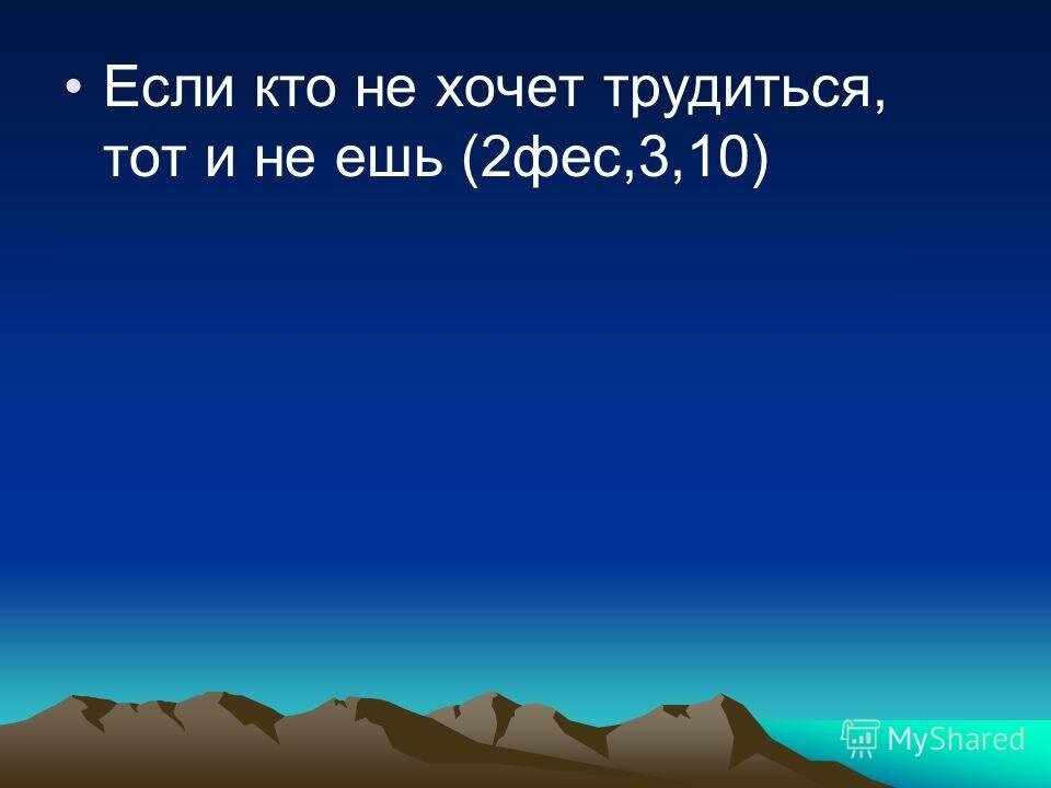 Для некоторых людей работа — это проклятье, наложенное на человечество в результате греха, но сама по себе работа не является проклятьем. Еще до грехопадения на человека была возложена обязанность возделывать Эдемский сад (Быт. 2:15). Библия подчеркивает, что и Бог, и Иисус трудятся (Ин. 5:17). Проклятье — это “терния и волчцы” и все то, что затрудняет нашу работу (Быт. 3:17-19). Сама по себе работа — это благословение, придающее нашей жизни смысл (см. Еф. 4:28). В фессалоникийской церкви некоторые не хотели работать (2 Фес. 3:11); они считали, что их должны содержать другие. Может быть, они неправильно понимали второе пришествие Иисуса. А может, как некоторые сегодня, они просто думали, что кто-то “обязан их кормить”. Какими бы ни были их мотивы, Павел приводит три очень убедительных довода, почему они (и мы) должны честно трудиться: 1) Потому что так повелел Бог (2 Фес. 3:6, 10, 12). 2) Потому что Павел сам подал им пример (2 Фес. 3:7-9). 3) Потому что грех имеет последствия (2 Фес.