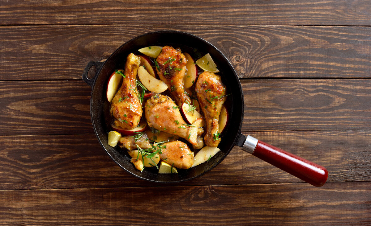 Это простое, но аппетитное блюдо по силам даже неопытной хозяйке. Румяной уткой в пряном маринаде можно не только побаловать мужа, но и удивить гостей, поставив на праздничный стол. В процессе тушения птица избавляется от излишков жира, пропитывается соком яблок, мясо становится мягким и сочным. Продукты для приготовления Лучше, чтобы птица была домашней и мясистой. Таким критериям соответствует порода пекинская или мускусная. Для тушеной утки с яблоками потребуются: Важна правильная нарезка птицы: лучше кусочками, которые хорошо впитывают фруктовый сок и ароматы специй, что имеет значение, когда блюдо готовится почти без жидкости. Фрукты лучше использовать кисловатые, крепкие, например, антоновка или сорт «ренет Симиренко». Как готовить тушеную утку с яблоками Рецепт: На оставшемся на сковороде утином жире можно обжарить часть яблок, нарезав покрупнее половинками. Получится замечательный гарнир или отдельное оригинальное блюдо. К тушеной утке хорошо подать пюре или печеный картофель и