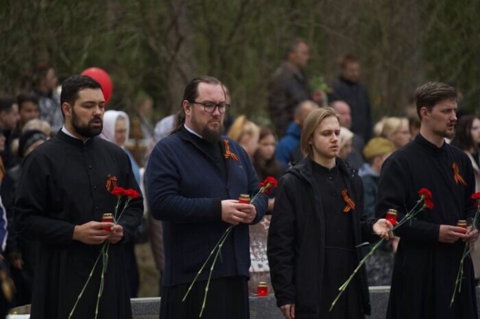 9 мая 2022 года, в 77-ю годовщину Победы в Великой Отечественной войне, студенты Псково-Печерской духовной семинарии приняли участие в параде Победы в городе Печоры. По окончании торжественной части, студенты и преподаватели семинарии прошли Бессмертным Полком к мемориалу воинам-защитникам Родины на братском кладбище города Печоры. На месте погребения героев прошла заупокойная лития, которую возглавил проректор по воспитательной работе Псково-Печерской духовной семинарии иеромонах Прохор (Андрейчук). После минуты молчания студенты семинарии возложили цветы к могилам павших бойцов советской армии. Подробнее на: http://pskov-eparhia.ru/archives/38023