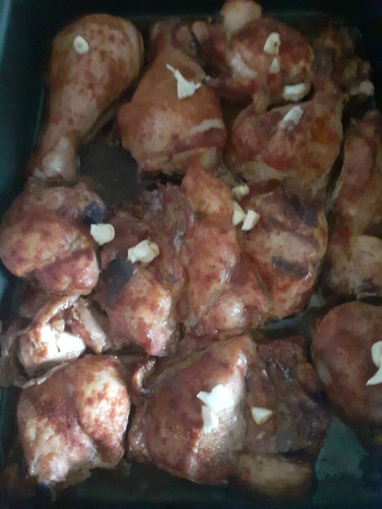 Курица🍗 Ингредиенты: КУРИЦА, СОЕВЫЙ СОУС, СОУС СЛИВОЧНО-ЧЕСНОЧНЫЙ, СОЛЬ, ПЕРЕЦ , чеснок, ПАПРИКА КОПЧЕНАЯ, МЕДА ЦВЕТОЧНОГО, МАСЛО РАСТ.ДЛЯ СМАЗКИ Способ приготовления: Курицу моем. Режем на кусочки, солим, перчим. Курицу отправим в Маринад из Меда, Соевого Соуса и Сливочно -Чесночного Соуса на 30 минут. Противень смазываем Маслом, выложим Курицу, посыпем Копченой Паприкой, и ставим в разогретую духовку на 1 час t180 c. Минут за 15 до готовности выльем Воду с Чесноком. Подаем с Любимыми Закусками и Гарниром👍