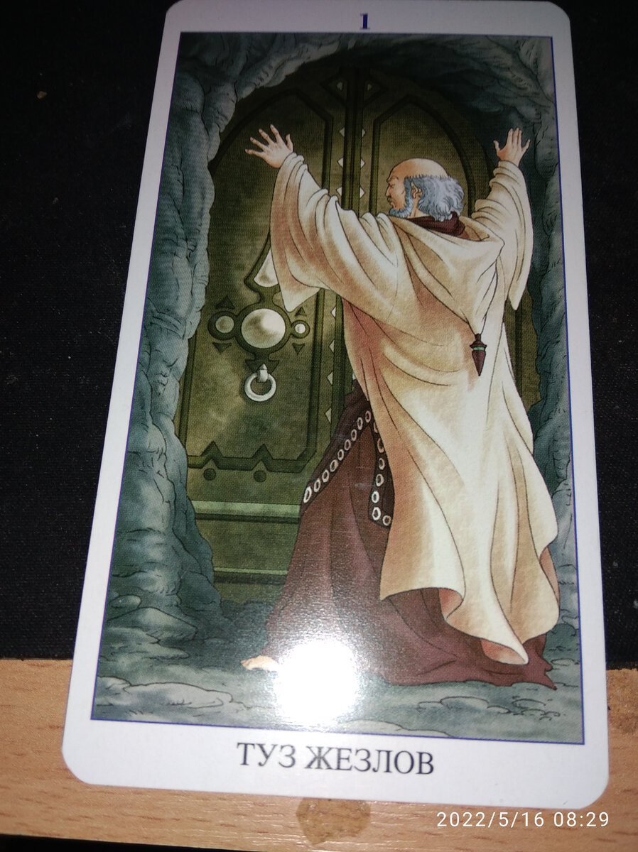 Сегодня выпал Туз Жезлов, сюжет карты такой: Пожилой мужчина колдует над закрытой дверью и таким образом пытается ее открыть, " сим сим откройся" Смысл карты в том что у вас имеется большой энергитический потенциал который даст большой приток свежих сил для реализации ваших планов и достижения поставленных целей. По всей видимости что вы обладаете неиссякаемым источником сил и у вас ещё есть не использованные возможности для осуществления ваших проектов и решения сложных задач и проблем. По видимому вы готовы добиться большего и для этого вам просто не стоит распылять свои силы на бесцельные и бессмысленные занятия,а сконцентрироваться на более важных и серьезных вещах. Не тратьте свои силы и средства на то что ни коим образом не оправдывает эти жертвы.