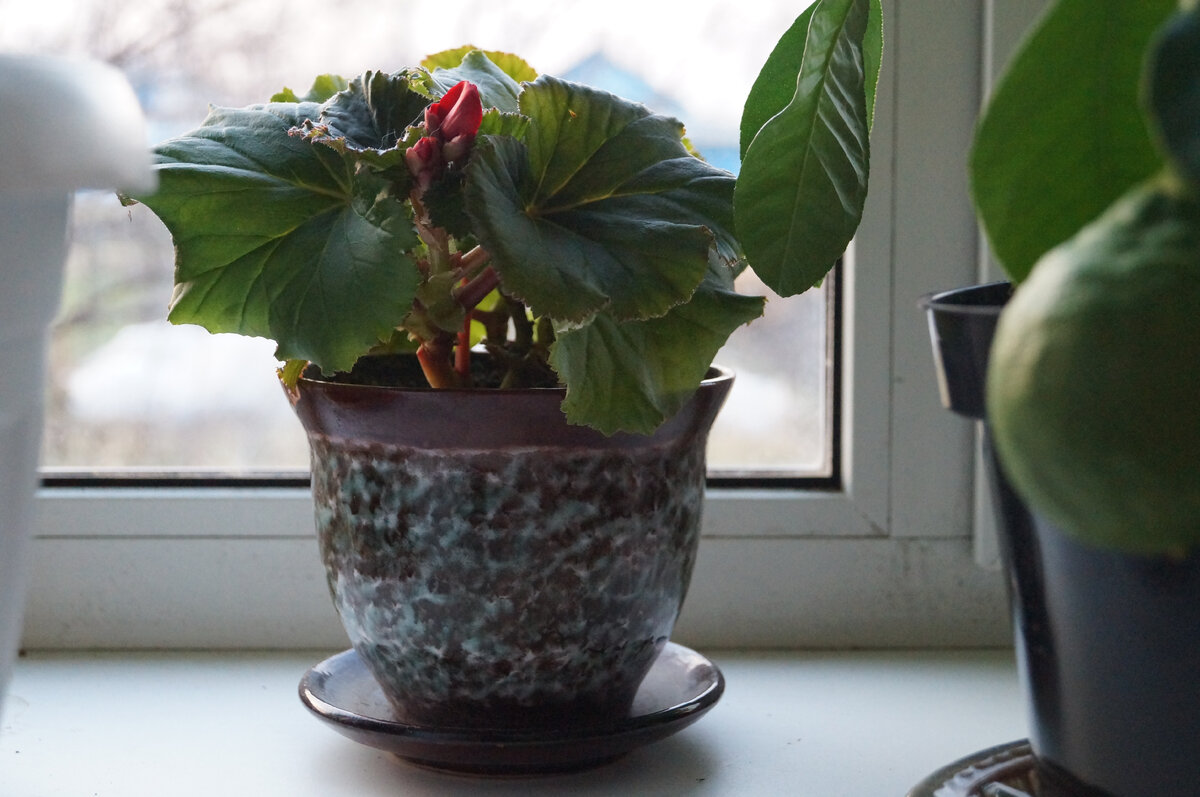 Грунт держу всегда чуть влажным, но если вы забудете ее полить несколько дней, то ничего страшного не произойдет: толстые мясистые стебли бегонии держат большой запас воды.