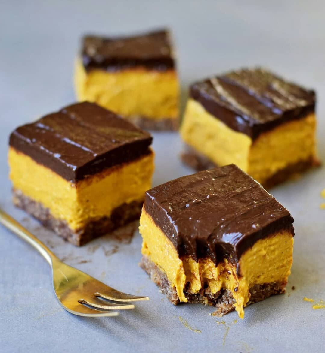 💥ТЫКВЕННЫЕ БАТОНЧИКИ БЕЗ ВЫПЕЧКИ🍫 Сложность ⭐️⭐️ ⏰ 1 час. ⠀ #veg_десерт ⠀ ✅ Ингредиенты: ⠀ Основа: ▪️ 120 г фиников ▪️ 45 г овса ▪️ 30 г орехов или семян по выбору ▪️ 1/2 ч.л. ванильного экстракта (по желанию) Начинка: ▪️ 300 г тыквенного пюре ▪️ 100 г овсяной муки ▪️ 80 г подсолнечного масла ▪️ 80 г кленового сиропа или агавы ▪️ корица по вкусу Шоколадная глазурь: ▪️ 80 г тыквенного пюре ▪️ 60 г кленового сиропа или агавы ▪️ 30 г какао-порошка ▪️ 2 ст.л. подсолнечного масла ▪️ щепотка соли 👩🏻🍳 Как готовить: ▶️ Смешать ингредиенты для основы в блендере. Если тесто получается сухое, добавить еще несколько фиников. Распределить по застеленному пергаментной бумагой противню (~15x15 см). ▶️ Смешать в блендере все ингредиенты для начинки. Выложить на основу и отправить в морозилку на 30 мин. ▶️ Смешать все ингредиенты для глазури и распределить по начинке. ▶️ Отправить в морозилку до полного застывания (не менее 2 ч.). Достать из морозилки, порезать на батончики. Перед подачей дат