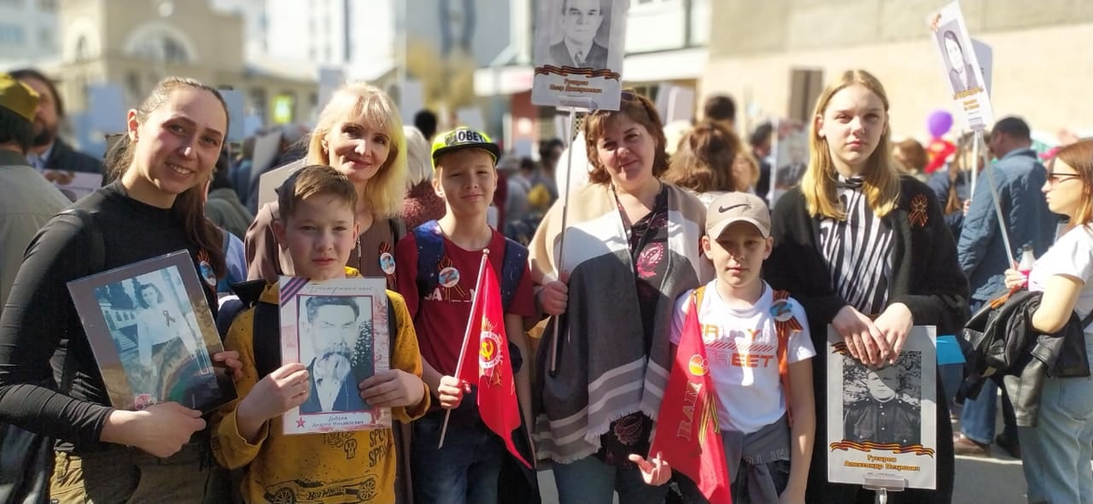 В акции «Бессмертный полк», которая проходила в Екатеринбурге 9 мая, приняли участие сотни и тысячи екатеринбуржцев. Среди них — прихожане и воспитанники приходских школ храмов уральской столицы. Люди объединились после двухлетнего перерыва и вновь собирались у Храма на Крови, чтобы влиться в колонну и пройти по центральным улицам Екатеринбурга с портретами и транспарантами своих близких. Потому что, как подчеркнули в отделе религиозного образования и катехизации Екатеринбургской епархии, нет в России семьи такой, где бы ни памятен был свой герой. Так, например, от прихода во имя святых Космы и Дамиана города Екатеринбурга собралось более 50 человек во главе с настоятелем иереем Сергием Ермолаевым. При этом, половина участников была — дети. — Ребята всю дорогу подпевали взрослым, которые исполняли военные песни под бубен, который специально взяла с собой режиссер концертов воскресной школы и мама двух воспитанников Наталья Гончарова. Вся радость и благодарность за Победу была написана