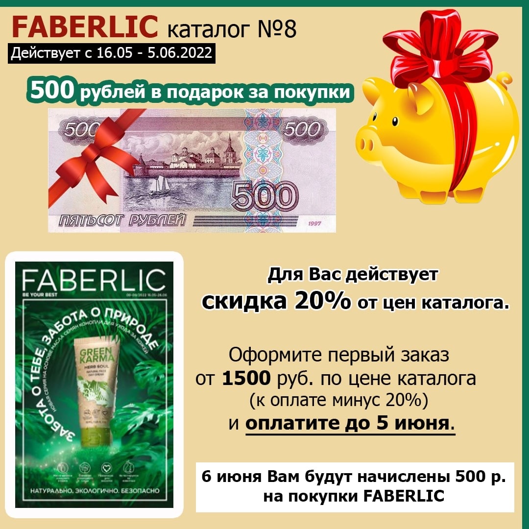 ❤️ Как же это приятно! Подарки получать любят все! Ставьте лайк ❤️, пишите комментарии, пишите в подписывайтесь на мой аккаунт и читайте дальше. ❤️ Не перестаю удивляться компании Фаберлик. В такое сложное время, она нас балует. Уже несколько каталогов подряд каждому новичку компания дарит 500 рублей. Для себя каждый открывает новые возможности. ❤️ Каждому новичку компании, всем кто зарегистрируется к нам в команду с 16 мая по 5 июня включительно, дарим 500 рублей на оплату покупок. ✍️ Для того что бы получить этот подарок необходимо с 16 мая по 5 июня оформить и оплатить заказ на сумму всего лишь от 1500 рублей по цене каталога. У вас как у консультанта будет скидка 20% на весь ассортимент продукции. А он у нас не маленький, больше 8000 наименований продукции. 😊 Воспользуйся возможностью получить 500 рублей. В наше время, деньги с неба не падают. Оставляйте комментарии, пишите в личку. Расскажу как пройти регистрацию. Ссылка на самостоятельную бесплатную регистрацию https://clck.ru/T