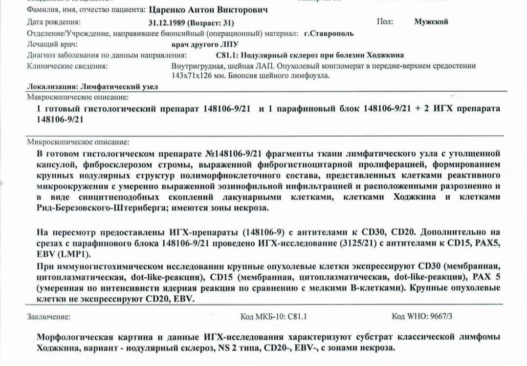#датьпиzдылимфоме Стекла РАСШИФРОВАЛИ. Ну, что... Печкин принёс письмо на электронную почту. Правда мне сказали, что отправили его ещё вчера, но спутали "нижнее подчеркивание" с "тире" и оно ушло не туда. А это значит, что вчера в 15:50 по Москве, где то на просторах нашей Родины, ещё один человек с прекрасным именем и фамилией как у меня, toni_tsarenko@mail.ru, (только "тире") зайдя на почту, в сладком предвкушении увидеть смс о доставке новых сандалей… сейчас вкидывается валерьянкой и афобозолом, каится перед родственниками за все свои прегрешения и вообще охеревает от крутого жизненного поворота, когда вместо смс о поступлении в МГУ, ему прислали письмо со смертельным диагнозом. (Пока Вы читаете пост. Я уже пишу на его адрес о нелепой ошибке со стороны борцов за здоровье и номера первых, попавшихся психологов). Я уже начал волноваться, что в местном онкодиспансере мне впихнули чужие результаты, но все подтвердилось. Лимфома как советский пограничник браво угрожает моей жизни