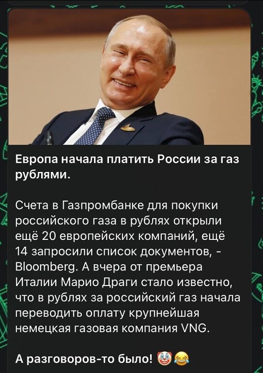 Европа начала платить за газ рублями