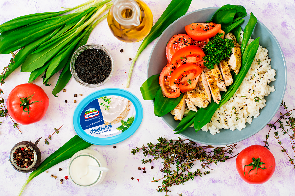 Сбалансированное питание дает энергию и все микроэлементы, необходимые человеку в течение дня. Такому рациону легко научиться, если под рукой правильные продукты и намерение как можно дольше оставаться здоровым и в форме. Совет 1. Изучите правило «сбалансированной тарелки». Пусть каждый прием пищи содержит белки, жиры, углеводы и клетчатку. Создавайте разнообразные сочетания. Клетчатка есть не только в отрубях, а еще в капусте, миндальных орехах и бобовых. Совет 2. Выбирайте понятные вам продукты. Например, творожный сыр Hochland сливочный. У него простой хороший состав. Он содержит белки (6 г на 100 г) и жиры. Диетологи рекомендуют его даже при диетическом питании — в качестве заправки к салатам вместо майонеза. С творожным сыром Hochland сливочный рекомендуем вам приготовить нежные тосты с подкопчённой семгой. Идеально подойдут для завтрака и легкого перекуса на работе. ИНГРЕДИЕНТЫ: ПРИГОТОВЛЕНИЕ: Багет нарежьте на порционные кусочки и подсушите на сковороде. Подкопченную семгу мелко