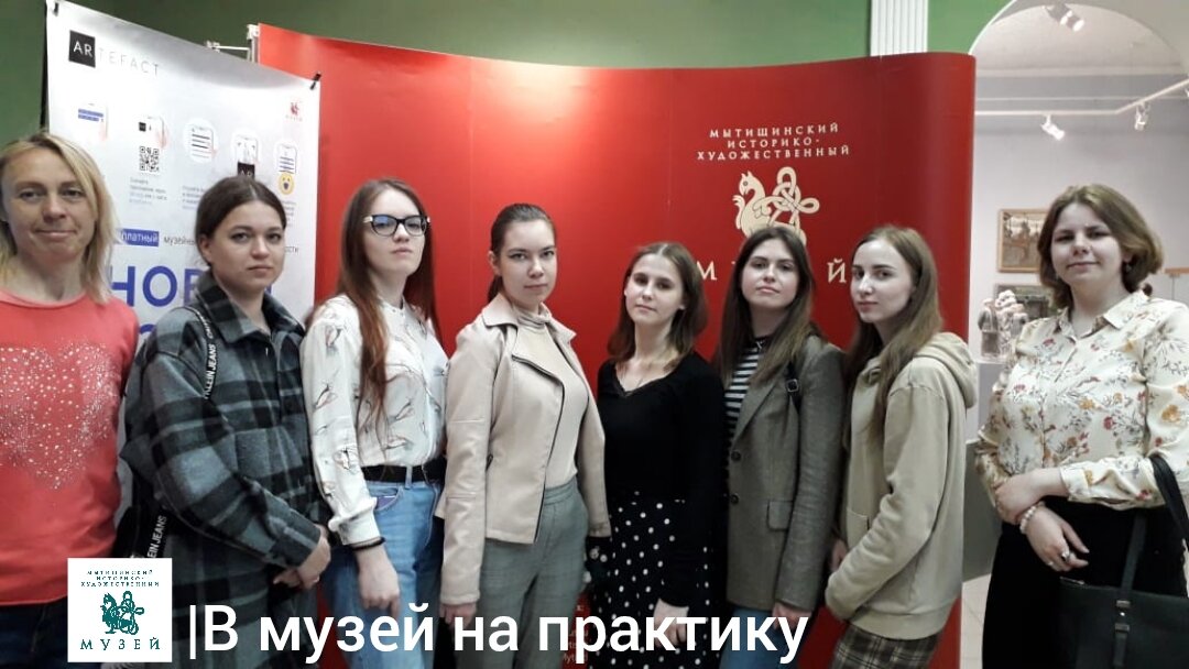 И снова в музей на практику пришли студенты Московского государственного областного университета, будущие педагоги по изобразительному искусству. В течении полутора месяцев они будут помогать сотрудникам музея организовывать художественные выставки, участвовать в мероприятиях, флэшмобах, готовить реквизит для интерактивных программ и др. Работа предстоит интересная и разнообразная. Первое мероприятие в котором примут участие практиканты — это международная акция - Ночь музеев. Подробнее читайте на сайте Мытищинского историко-художественного музея: https://mytyshimuseum.ru/