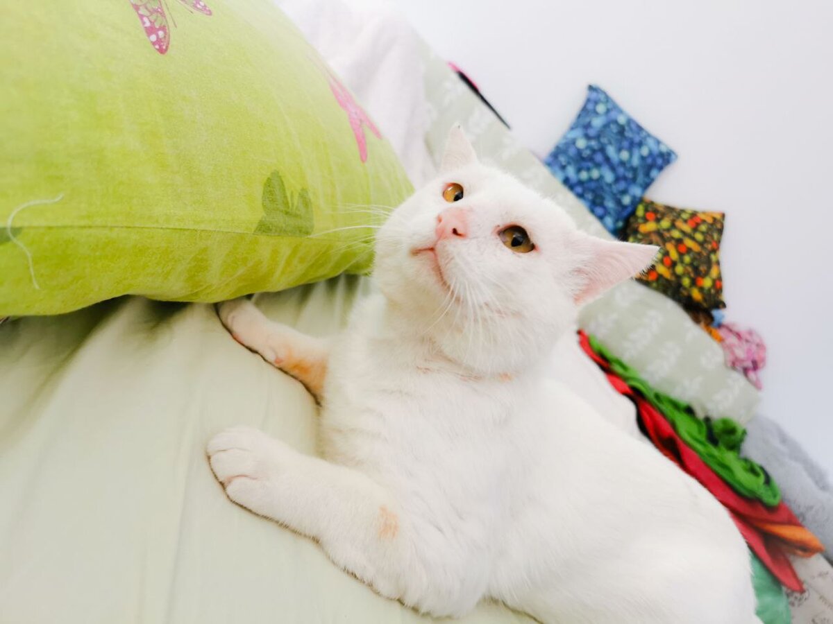 Этот кот не перестаёт нас удивлять. И смешить. Каждое утро мы смеёмся над ним. Потому что именно утром он выписывает невероятные кренделя и раскрывает забавные части своего характера. Орать кот перестал. Счастье! Теперь он ходит тихо, а не орёт постоянно. Бывает ещё, конечно, что вопит или разговаривает, но это не сравнить с тем, что было раньше. Спать просится с нами, но всю ночь не выдерживает. Просыпается в 3-4 утра и начинает носиться, играть, греметь, нападать на других котов и буянить. Как только встаю с постели, чтобы закрыть его в другой комнате, Страшила ныряет под кровать и оттуда его не достать. А то и в более узкие места прячется. Он уже выучил, что сейчас его возьмут под белы лапоньки и отведут в комнату. И хотя в ней есть место, стеллаж у окна, лоток, домик, еды и вода, там нет общества. А Страшила любит быть со всеми. И вот, чтобы его не запирали, он или прячется или ложится на кровать и притворяется, что спит. Но стоит нам погрузиться в сон, как мы вскакиваем от того, ч