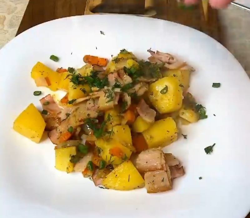 Понадобится: Картофель Лук Морковь Чеснок Бекон Соль Чёрный перец Паприка Хмели-сунели Сливочное масло Готовим: Картошку чистим, моем и нарезаем крупными кусочками. Репчатый лук, морковь нарезаем и добавляем к картофелю. Выдавливаем чеснок. Добавляем соль, перец, паприку, хмели-сунели. По желанию можно добавить в картошку разные специи по своему вкусу. Всё нужно хорошо перемешать. В банку перекладываем первый слой картошки, сверху выкладываем мелкопорезанный бекон, опять картошку, слой бекона. Сверху кладём кусочек сливочного масла. Горлышко банки закрываем фольгой и ставим в холодную духовку. Включаем духовку на 180гр и готовим 45 мин. Готовую картошку посыпаем зеленью. Приятного аппетита!