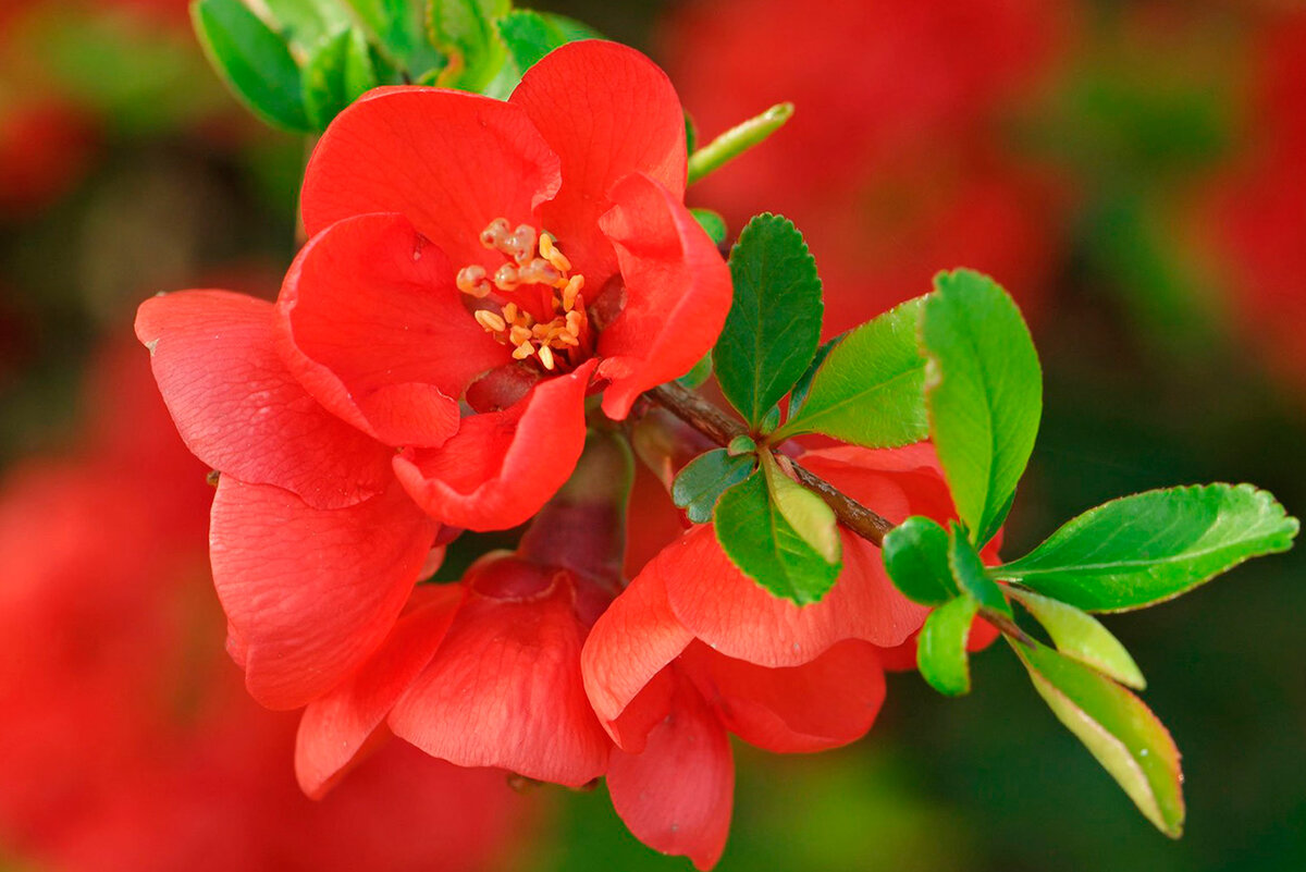 Очень интересное многолетнее растение, небольшой кустарник с изумительно красивым цветением и съедобными плодами. Очень прост в выращивании и с минимальным уходом. Хеномелес, в народе имеет названия айва японская - растение, великолепное во всех отношениях. Айва японская в зависимости от сорта имеет размеры от 60 см до двух метров в высоту. Это хорошо ветвящийся колючий кустарник, который можно использовать в качестве красивой живой изгороди или просто в декоративных целях. Весной хеномелес цветет многочисленными цветками красно-оранжевого или розово-лососевого цвета (есть сорта с белыми цветками). Цветки расположены по всей длине побегов, являются хорошим медоносом, привлекают в сад пчел. После цветения образуются плоды, сначала зеленые, потом они приобретают желтый цвет, иногда имеют крапинки. Плоды хеномелеса некрупные, не больше 5 см в диаметре, очень твердые и кислые на вкус. Но они вполне съедобны и очень полезны, так как содержат большое количество витамина С. Из плодов готовят