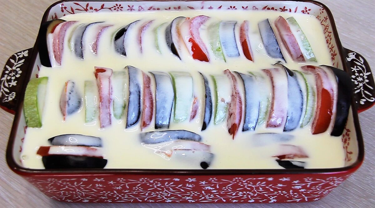 Баклажаны с кабачками, запеченные в духовке в заливке. Нежное, сочное и вкусное блюдо из овощей