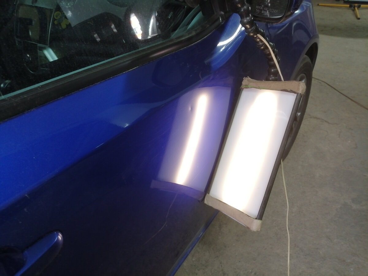 Удалили эту вмятину без покраски. Для ремонта снимали обшивку двери.