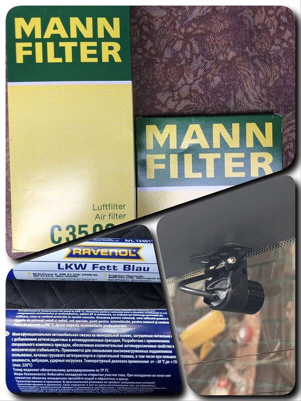Замена воздушного (артикул С35004) и салонного (артикул CU2131) фильтров фирмы Mann на пробеге 232099 км. Были закуплены еще до повышения цен. Карданы нынче шприцевал смазкой Ravenol LKW Fett Blau (артикул 4014835768543), на пробеге 234595 км, учтя критику в отношении Grease LST MOLY EP2 от ГПН. Осенью прошлого года, установил видеорегистратор, но дооснастить его камерой на заднюю дверь руки так и не дошли. Сейчас весна, тепло, можно с машиной возиться самому. И так: валялась у меня камера от зеркала регистратора фирмы Xiaomi. Приобретал его супруге в Nissan Note, задняя камера шла с регистратором. Ночью показывала не важную картинку, и использовать её как парковочную камеру было нельзя. В замен этой была докуплена другая. Без дела девайсу лежать совсем не дело)), тем более есть куда его пришпандорить. Прежде всего надо было снять обшивку и накладки задней двери. Нюансы разбора присмотрел в бортжурнале у уважаемого AlexTV_HELP. Ничего сложного. Аккуратно на стяжки проложил провод камер