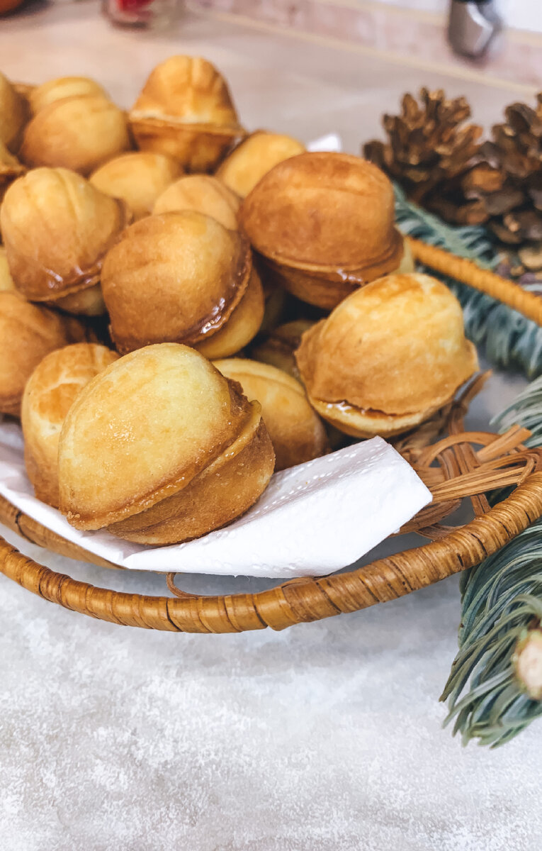 Обожаю их. Именно домашние со своей варёной сгущёнкой 😋 объедение 🤤 Ингредиенты примерно на 40 орешек: 🔸Яйца 2 шт 🔸Масло сливочное 250г 🔸Сахар - пол стакана ( стакан 250мл) 🔸Мука - 3 стакана ( стакан 250 мл ) 🔸Сода 1/2 ч.л погасить 1/2 ч.л уксуса ( или 1/2 ч.л разрыхлителя) 🔸Соль щепотка 🔸Масло растительное чтоб смазать форму 🔸 Сгушенка 1 банка ( варила сама 3 часа ) Процесс готовки на видео) Наиболее важные моменты. 1. Масло сливочное взяла комнатной температуры. 2. Сгущёнку варила 3 часа. Важно чтоб была ГОСТовская с натуральным составом. Хотите густую начину , варите ещё дольше. Можно использовать готовую варёную. 3. Форму обязательно надо смазать растительным маслом. 4. Тесто как сделали , лучше накрыть и дать отдохнуть минут 10. 5. Шарики формируем размером в пол грецкого ореха. Это примерно 6-7 г. Если угадать с количеством теста орешки будут красивые орешки. Если формировать маленькие , то орешки будут нецельные. Если большие, то отхода будет много и пригора