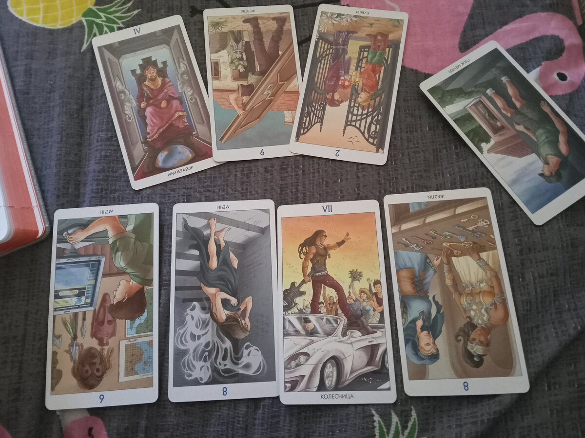 Сегодня вам предстоит много работы, не лёгкой, и не очень вам интересной, но к сожалению это ваш собственный выбор, вы слишком строги, недоверчивы к окружению и почему то решили, что без вас все остановиться, не легче ли будет поделится частью дел со своими близкими, друзьями, а они вам точно сегодня не откажут и даже будут рады общению и взаимодействию, и у вас кстати тоже настроения поднимется. А вот, в делах, лучше все проверить и не очень то доверять информации из вне. Новости и какие-то известия могут оказаться просто фейком. Что дома? А дома вы чувствую, себя не очень уютно, вам кажется, что вы закрыты от мира в четырёх стенах и не видите выхода, но хочу вам сказать, что выход всегда есть, даже из тупика, надо просто повернуть обратно и найти другую дорогу, вот так и у вас. Перестаньте переживать из-за того что вам кажется, что вы одиноки и вас никто не понимает. Неожиданно для вас в вашу жизнь ворвётся ветер перемен, и вы конечно должны быть к этому готовы. Колесница не просто так появилась в позиции неожиданности, вам очень быстро нужно будет найти какое-то решение и правильно выбрать ваш золотой ключик от счастья. И последнее, в итоге дня есть небольшое послание...от перевёрнутого Пажа Жезлов, не создавайте себе кумиров, живите своей жизнью , " Не всегда цветы в чужих окнах говорят, что там рай" вы сами кузнецы своего счастья.