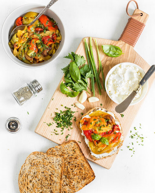Эти перцы - прекрасная закуска, отличная начинка для сэндвича и ароматное дополнение для многих блюд. Рекомендую сразу заготавливать большой объем, так как они слишком быстро заканчиваются)) Понадобятся: 1 кг болгарских перцев 1 зубчик чеснока По 2-3 веточки петрушки, базилика 1 щеп хлопьев чили (по желанию) 1 ст. л. оливкового масла соль перец Духовку разогреть в режиме «гриль» до температуры 300 градусов. Перцы помыть. Уложить на противень, застеленный пергаментом. Поставить противень в верхнюю половину духовки. Запекать 20-30 минут, периодически переворачивая перцы. Они должны полностью пропечься и стать мягкими, а кожица опалиться сверху. Готовые перцы переложить в стеклянную или керамическую миску, накрыть крышкой или пленкой на 15-20 минут. Затем очистить перцы от кожицы и семян. Если необходимо, промывайте руки под водой. Но сами перцы промывать не стоит, так как тогда смоется ароматный сок, выделяющийся из них. Порезать перцы на полоски, добавить к ним чеснок, масло, специи и