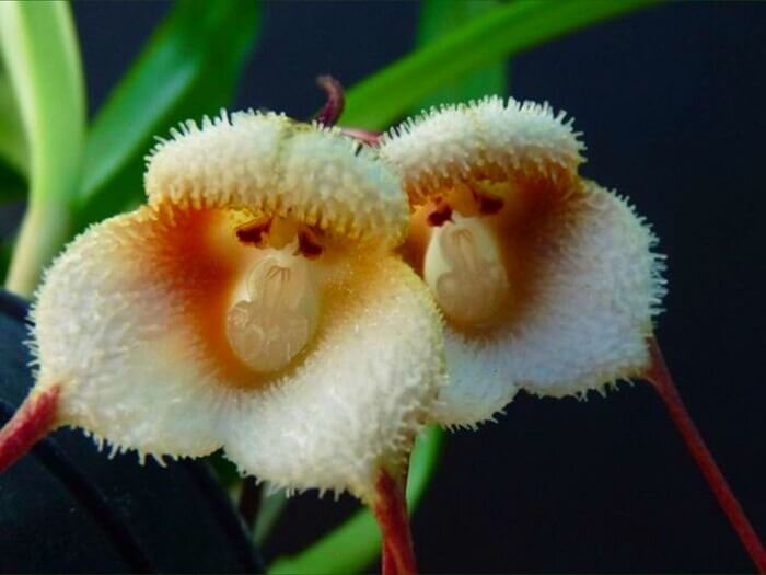 Есть как минимум два вида орхидей, которые похожи на обезьян. Один из них - Dracula saulii, крошечная пушистая белая орхидея с лицом обезьяны, обнаруженная совсем недавно в Перу (2006 год), другой - Dracula simia - орхидея, обнаруженная в горных районах Эквадора, Колумбии и Перу. Оба они относятся к роду Дракула, который насчитывает 123 вида. Ни одно растение этого вида не высасывает кровь, а название получили за свою форму, напоминающую морду маленького дракончика и преимущественно темную расцветку.