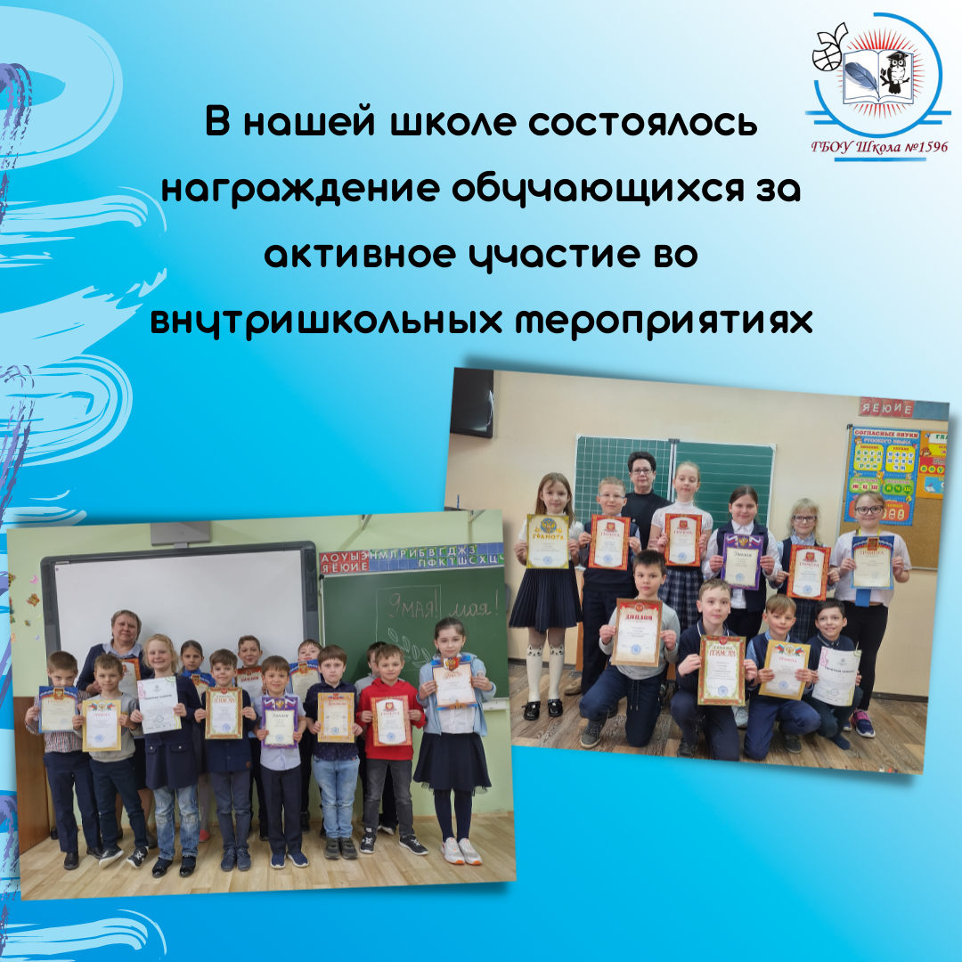 На прошедшей неделе в нашей школе состоялось награждение обучающихся за активное участие во внутришкольных мероприятиях. Подходит к концу очередной учебный год. На протяжении всего года обучающиеся 1-11 классов принимали участие не только в общегородских, межрайонных, региональных, всероссийских конкурсах и проектах, но и являлись активными участниками внутришкольных мероприятий. В нашей школе много талантливых ребят, которые своим творчеством делают школьную жизнь ярче и интереснее. Ребята смогли проявить себя в различных направлениях деятельности: участие в выставках рисунков и поделок; участие в тематических фестивалях, концертах; в благотворительных, экологических акциях и многое другое. По результатам рейтинга активности участия классов во внутришкольных мероприятиях были определены победители. В номинации «Самый активный класс» победили: