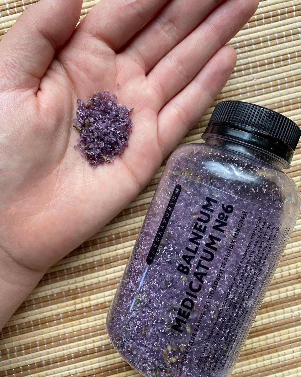 Я очень люблю аромат лаванды, особенно когда ее используют в средствах для ванны и душа. Микс для ванны с лавандой от питерского бренда Laboratorium я приобрела в одих из дней, когда сильно устала, для расслабления. Состав у соли очень хороший, там есть масло ши, миндальное и касторовое масло, кокосовое масло, масло лаванды и цветки лаванды, эфирное масло аниса. Средство чуть окрашивает воду в фиолетовый цвет и очень, очень вкусно пахнет лавандой. Баночки хватит в среднем на 5-6 применений. Но минус для меня тут есть - цветки лаванды, которые добавлены в соль, напоминают жучков, их много и потом неудобно смывать. На мой взгляд без них было бы лучше. Но в целом для расслающего принятия ванной это отличное средство. Объем 250 мл. Цена ~ 330 рублей. Купить микс для ванны от Laboratorium можно в Золотом яблоке, Ozon, Wildberries, я заказывала в службе доставки Самокат, привезли через 15 минут. Знакомы с брендом Laboratorium? Что-то пробовали у них?