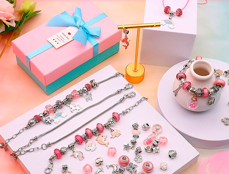 Браслеты и ожерелья создаются из бусин и подвесок, которые называются шармами. Этот подарок для девочек будет не только приятным, но и полезным. В процессе игры развивается мелкая моторика и сенсорика, воображение, фантазия и аккуратность.