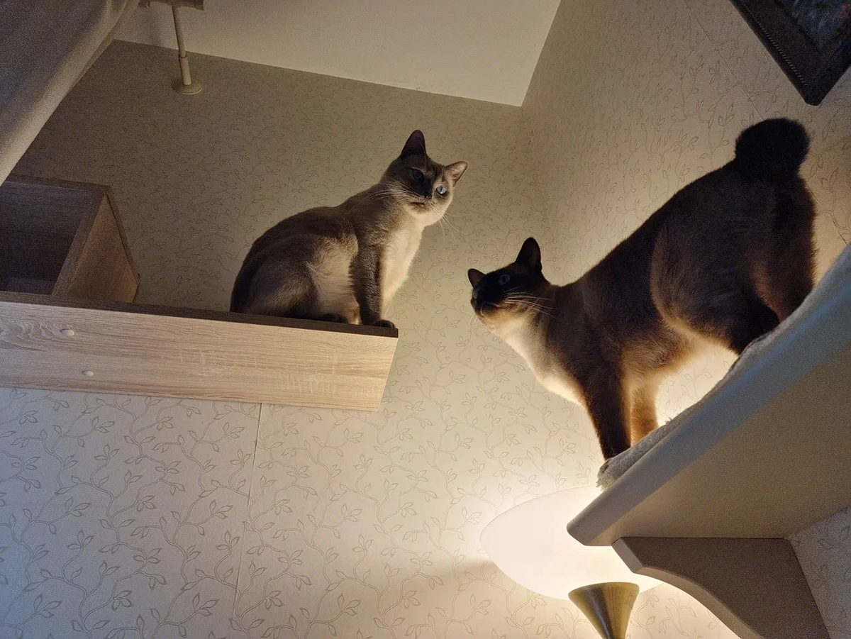 И сегодня утром в качестве зарядки котобанда полезла на шкаф. Я даже порадовалась - шкаф очень высокий и мне даже на стремянке не дотянуться до него, чтобы протереть пыль, а так скалолазы хвостатые хоть протрут пылюку - чего просто так ползать. 😉