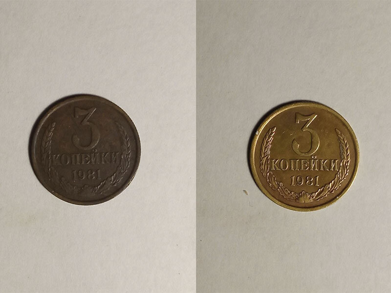 Приветствую всех. Ранее я вам рассказал о том, как искал и опробовал разные способы чистки находок. Каким методам и способам я отдал своё предпочтение. Чистка монет из алюминиевой бронзы и медно-никелевого сплава повторять не буду. Монеты из латуни, с ними возни больше. Способ мне приглянулся один, но из двух этапов, все зависит от загрязнения материала. Монеты современнее, но встречаются экземпляры просто тихий ужас. Хозяйственное мыло – первый этап очистки монет из латуни. Натерли мыло, развели, монетку замочили, можно ещё периодически зубной щёткой проходить. По времени иногда и на сутки оставлял. После мыльного раствора, наступило время второго этапа, и эстафету принимал ASIDOL-M. Результат смотрите сами. Латунь – это сплав меди и цинка. Монеты, в сплаве которых есть цинк, самые проблемные в очистке. Цинк реагирует на сильные кислоты, а они могут повредить, разъесть изделие. Если монета обработана и не высушена, на воздухе металл потемнеет через пару часов. Монеты из сплава меди-ни