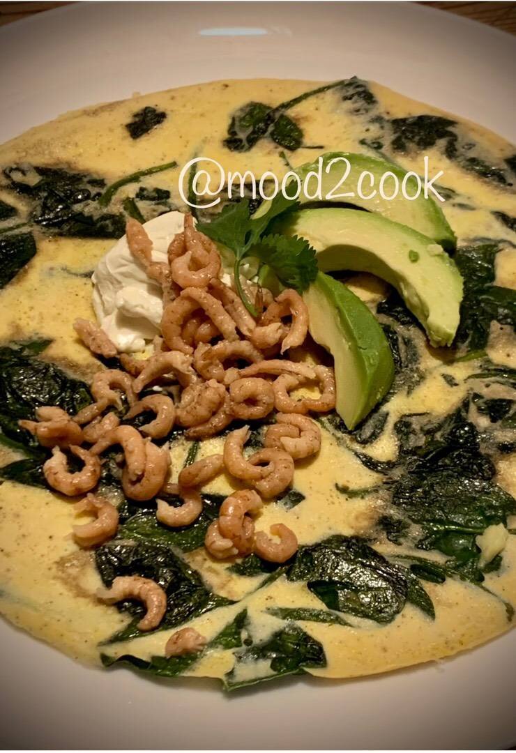 Все самое вкусное и полезное на одной тарелке! Просто , быстро и потрясающе вкусно! #пп Ингредиенты: Яйца, Сметана или крем - фреш , Шпинат, Масло для жарки, Коричневые креветки, Авокадо, Сливочный сыр (желательно со специями) по вкусу Способ приготовления: Шпинат обжарьте на разогретом масле до тех пор пока листья не обмякнут. Распределите по сковороде. Яйца взбейте со сметаной и специями. Залейте шпинат. Накройте сковороду крышкой и готовьте до готовности яиц. Выложите омлет на тарелку, смажьте сливочным сыром. Выложите поверх креветки и ломтики авокадо. Приятного аппетита!