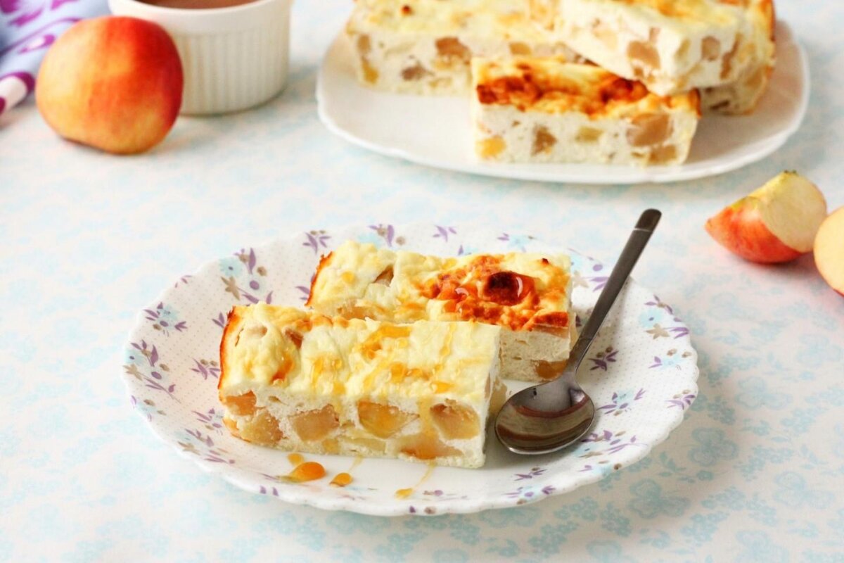 Ингредиенты 1 шаг Подготовить творог для запеканки. Для этого сначала необходимо растереть его с сахаром и желтками. Отдельно взбить белки, добавить к творожной смеси. Положить манную крупу, ванильный сахар, разрыхлитель, цедру и соль по вкусу, перемешать. Дать постоять 5–7 мин. 2 шаг Яблоки для творожной запеканки вымыть и обсушить. Из плодов удалить сердцевины с семенами. Мякоть нарезать небольшими кубиками. Добавить в творожную смесь, аккуратно перемешать. 3 шаг Выложить подготовленную массу в смазанную маслом огнеупорную форму. Разровнять поверхность и смазать сметаной. Готовить творожную запеканку 40 мин при 190°C. На стол можно подать, полив сгущенным молоком. Приятного аппетита!