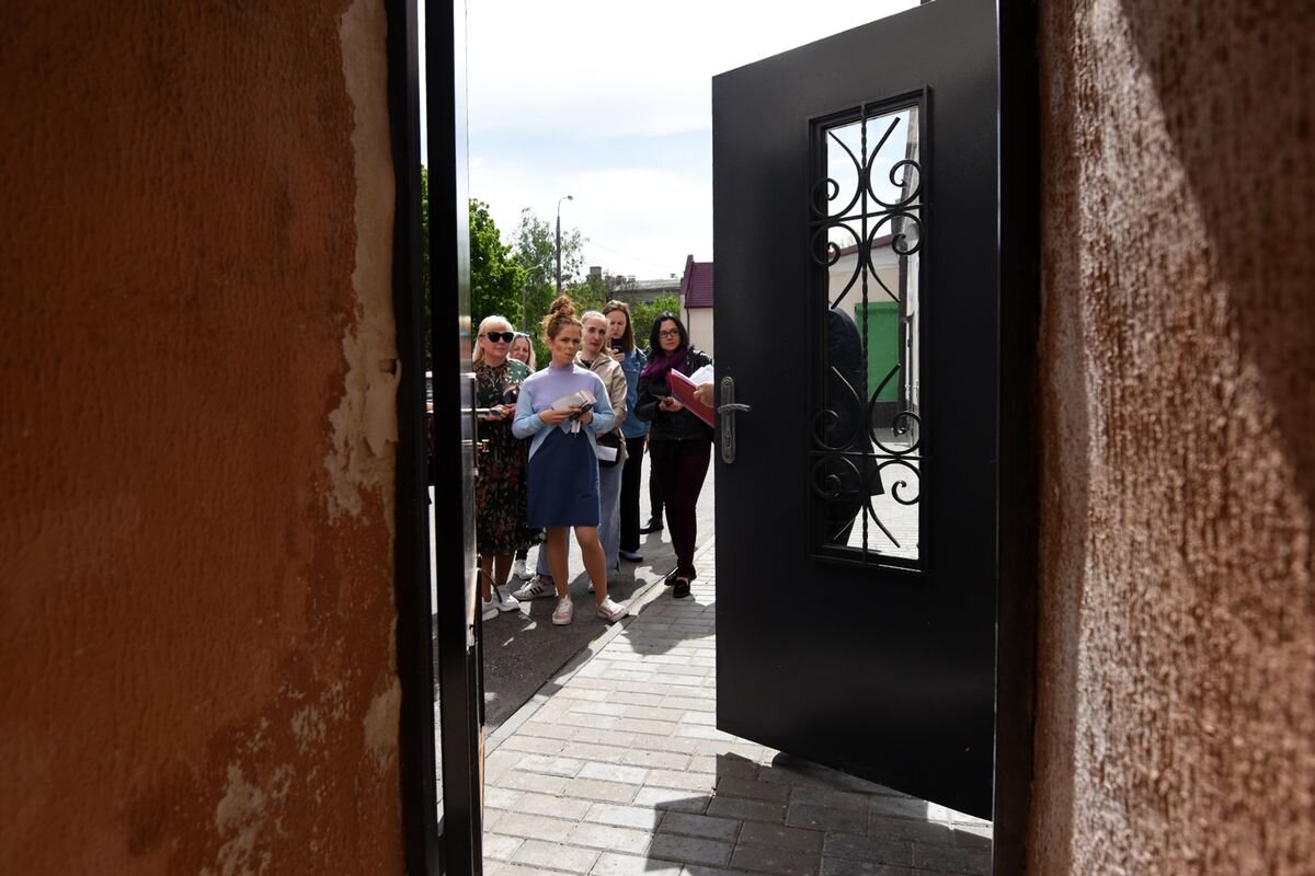 Наш путь из этого зала в киноаппаратную лежит через такую маленькую дверь, что приходится сильно наклоняться, чтобы в неё протиснуться. Кто-то из присутствующих даже пошутил про «путь в Нарнию» и про то, что «в 70-е годы, наверное, люди были меньше».