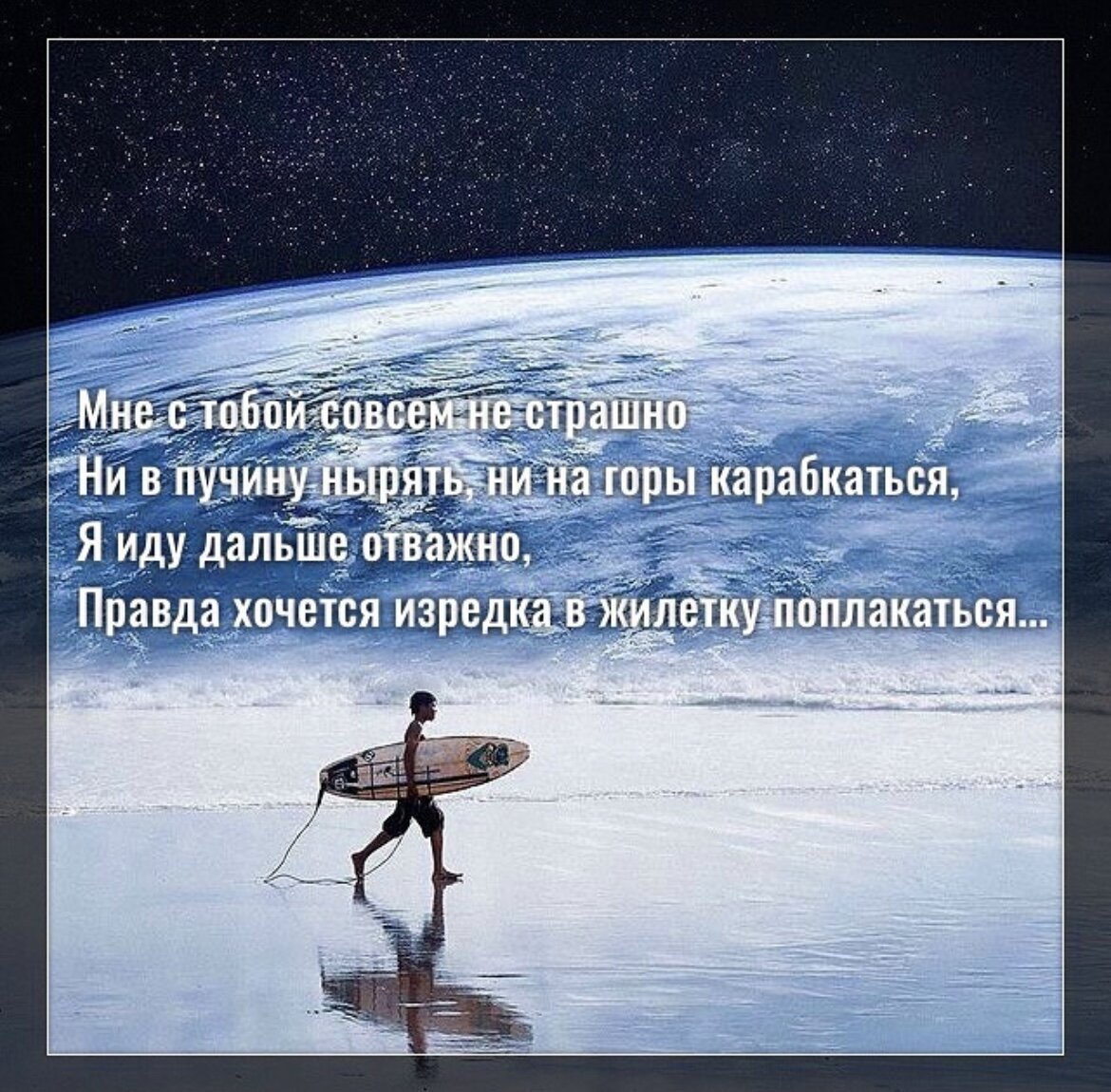 Мне с тобой совсем не страшно Ни в пучину нырять, ни на горы карабкаться, Я иду дальше отважно, Правда хочется изредка в жилетку поплакаться. Мой компас сбивается редко, Но если сбивается, ты мне помогаешь, И каждый раз очень метко По всем врагам моим светом стреляешь. Как без тебя мне справиться, Я здесь одна никогда не останусь, Тебе помогать мне нравится, Ты ждёшь меня сверху, пока я воплощаюсь. И так уже тысячи жизней, Прошли эту вечность, мы одно целое, Внутри нет моих мыслей, Я через твой голос вижу облако белое, Которое здесь защищает, Даёт наставления и указания, Небо нам так доверяет, Что снова даёт на Земле задание. Мы обязательно справимся С горами высокими, в море с пучинами, А потом в небеса отправимся Искать для рождения вновь причины...🙌✨