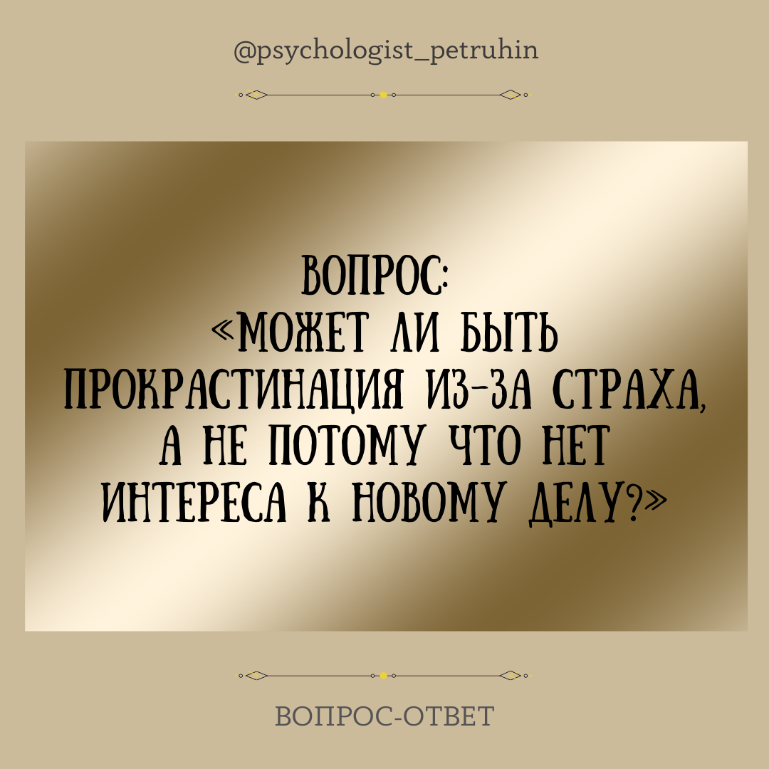 Вопрос: «Может ли быть прокрастинация из-за страха, а не потому что нет интереса к новому делу?». Да, может. Прокрастинатор – это перфекционист, который боится ошибаться, боится опозориться, боится негативных оценок и поэтому перестаёт вообще что-либо делать и начинать. Прокрастинация бывает в двух случаях: ✔ Когда человек не знает себя – и тогда, естественно, он не знает, что делать и куда идти. А ценности и интересы других людей долго не мотивируют, так как результаты от их воплощения и достижений получают другие, а не он сам. Он только тратит свои ресурсы на чужие цели. И тогда его же психика снижает энергетику человека, делает его аморфным и беспомощным, чтобы он не тратил свои силы на ненужные вещи. По-настоящему мотивируют только свои истинные, глубинные ценности и интересы, чем ты готов заниматься всю жизнь. Их нужно найти, обнаружить – и тогда жизнь приобретает направление, цели, ориентиры и наполнение. Организм работает по принципу: любые действия и трата сил должны приносить