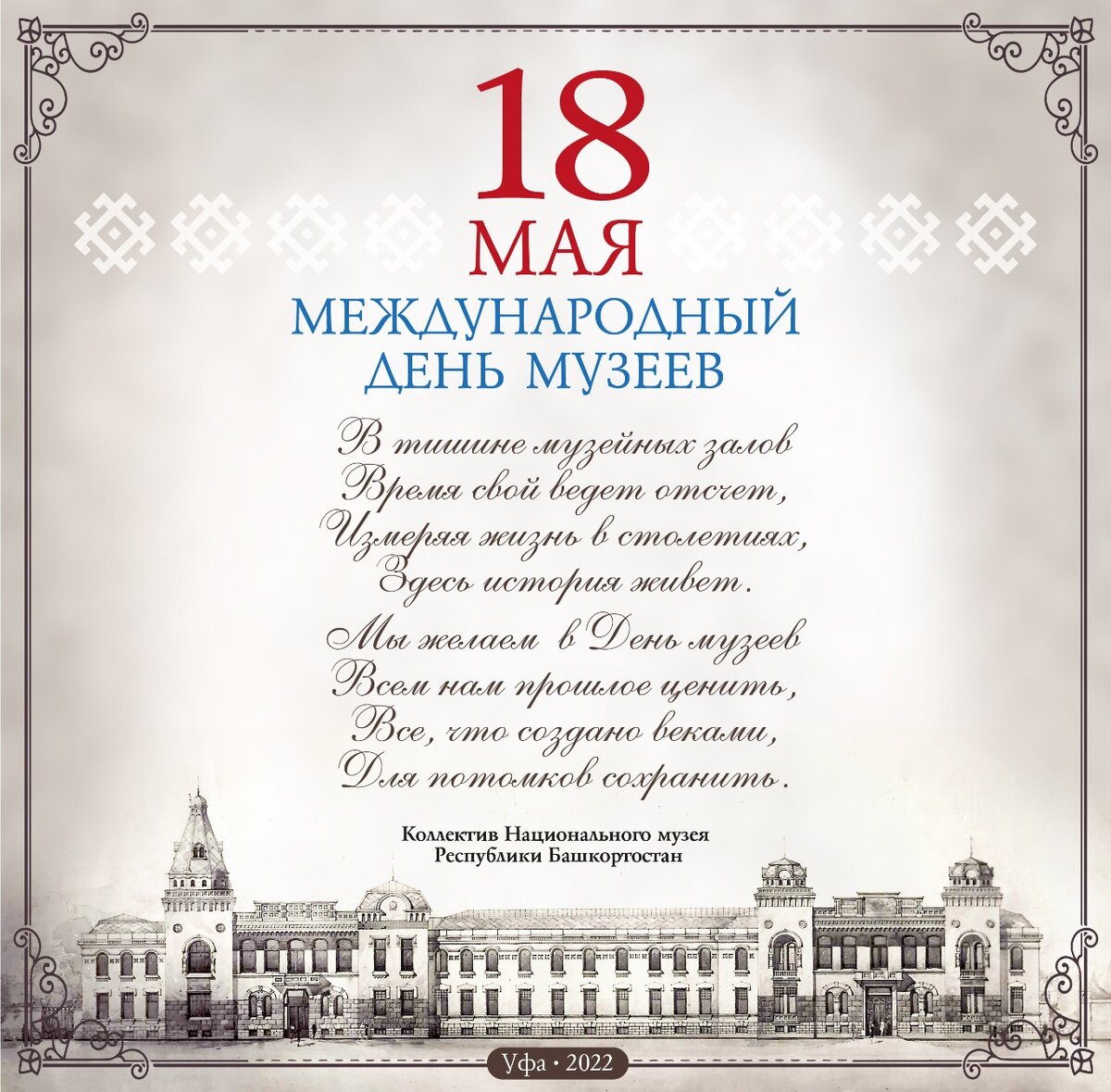 Сегодня – 18 мая 2022 года – в 45-й раз отмечается Международный день музеев. Эта праздничная дата была учреждена в 1977 году на проходившей в Москве и Ленинграде XI Генеральной конференции Международного совета музеев (ICOM), по предложению представителей музейного сообщества Советского Союза.