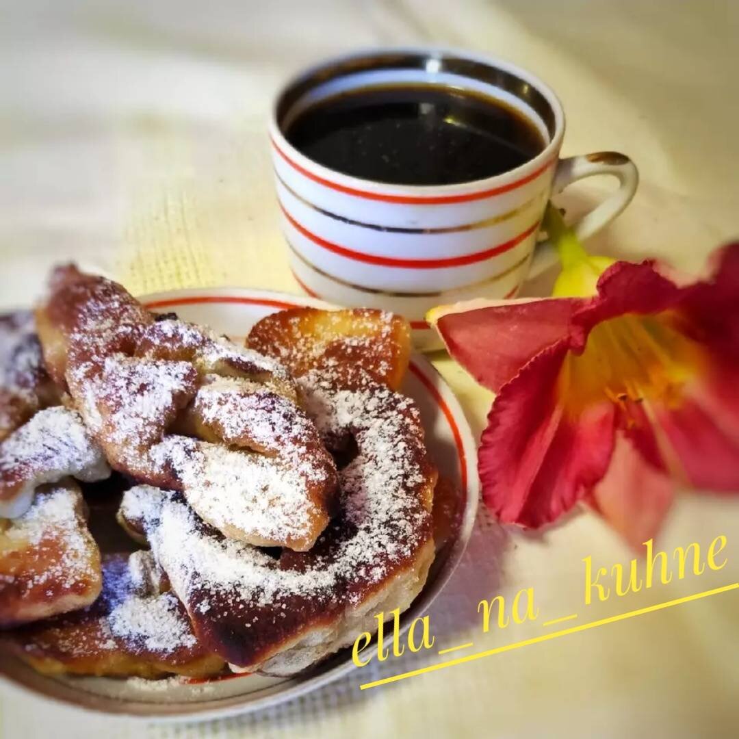 velereya Ингредиенты: кефира, яйца, растительного масла, сахара, соли, муки, разрыхлителя, Растительное масло для жарки Способ приготовления: Сначала смешать кефир, масло, яйца, соль, сахар. Затем всыпать муку и разрыхлитель. Вымесить тесто, но не забить мукой. Раскатать в пласт толщиной 3-6 мм, нарезать на пластины, сделать в пластинах надрез, через который протянуть один конец пластины. Жарить на среднем огне на растительном масле с двух сторон до золотистого цвета. Приятного аппетита 😍! Если вам по душе мои незатейливые рецепты: подписывайтесь и оставляйте свои фотоотзывы 📸!