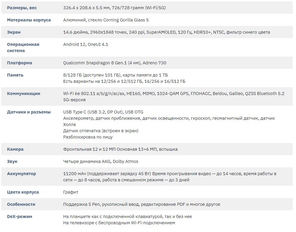 Технические характеристики экрана следующие: 14.6 дюйма, 2960х1848 точек, 240 ppi, SuperAMOLED, 120 Гц, HDR10+, NTSC, фильтр синего цвета.