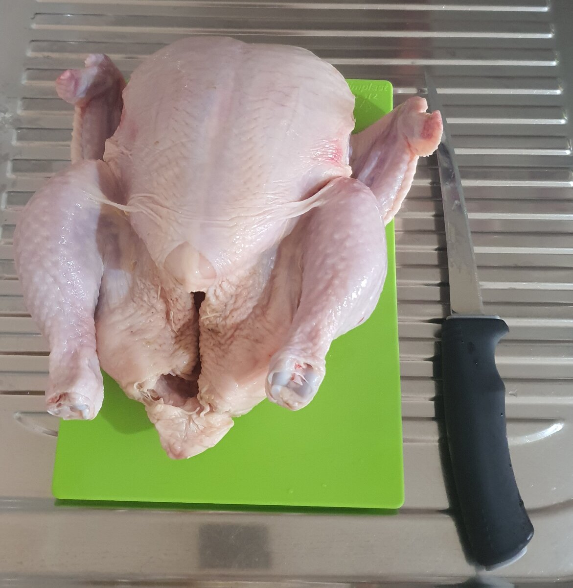 Мы семья из 3-х совершеннолетних человек. Папа, мама и ребенок 20 годиков. Для покупок используем в основном сервисы доставок по ряду причин: 1. Магазин шаговой доступности находится в 1.5 километрах (да, да, я помню-движение это жизнь! Но лень иногда побеждает ЗОЖ... Ну ладно, почти всегда!) 2. Я так меньше трачу, сразу видишь итоговую сумму и пугаешься, выбрасываешь из корзины все что не так уж и не обходимо. 3. У нас дом без лифта и этаж далеко не первый, это просто удобно когда специально обученный человек доносит тяжести до квартиры. Спасибо создателям этих сервисов, для слабых женщин вы просто неоценимы! 4. Ну и конечно же экономия времени. А время оно бесценно! В этот раз доставку выбирала по принципу у кого дешевле куры. Всегда покупаю 4-5 штук. Одну сразу готовлю, в этот раз была курица на соли. Очень интересный и главное простой рецепт, его можно посмотреть здесь. Остальных кур разделываю для последующей заморозки: 1. Отрезаю все выпирающие части (ноги/крылья/хвост). Хво