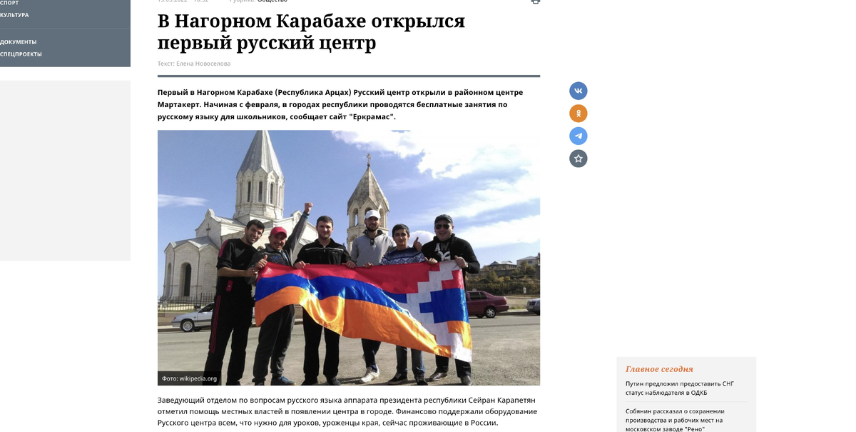 Что происходит в России? Порой ощущается, что некоторые структуры теряют ощущение реальности, начинают проводить политику, рознящуюся от политики Президента России. Так, «Российская газета» перепечатала с известного своей провокационной и антиазербайджанской направленностью армянского издания «Еркрамас» информацию об открытии русского центра на территории временной ответственности российского миротворческого контингента в Карабахском регионе Азербайджана. Это прекрасно, что в этой части Азербайджана, в рамках принятого в Азербайджане теплого отношения к русскому языку, начали изучать русский язык. Это им будет очень необходимо, проживая в Азербайджане. Но не об этом речь. Речь идет о том, что печатает ежедневная общественно-политическая газета, учрежденная правительством России. Выходит, что редакция государственной газеты выступает против подписанных на самом высоком уровне межгосударственных документов, тиражируя провокационную антиазербайджанскую информацию. Напомним также, что