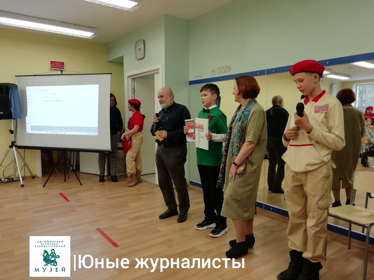 Сотрудники мытищинского историко-художественного музея приняли участие в жюри медиа-форума, посвященного 77-летию Победы в Великой Отечественной войне, в рамках обучения юнармейцев основам Военно-патриотической журналистики. Ребята из пяти команд очень ответственно подошли к выполнению конкурсных заданий. Жюри оценили их работы на хорошо и отлично. Никто из участников конкурса не остался без грамот и подарков. А занявшая 1-е место команда школы "Вектор" получила не только грамоту и книгу о Мытищах, но и специальный приз-сертификат на покупку книг. Подробнее читайте на сайте Мытищинского историко-художественного музея: https://mytyshimuseum.ru/