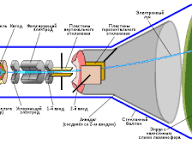 В этой статье я расскажу про электронные пучки и про техническое устройство, где они используются - про электронно лучевую трубку. Если если в стеклянной трубке вблизи катода расположить она с небольшим отверстием, то за ним можно получить узкий пучок электронов, который иногда называют электронным лучом. Пучок можно обнаружить, если направить его на экран покрытый сульфидом цинка. Попадает на такой экран, электроны вызывают его свечение Электронные пучки обладают рядом свойств, которое широко используется в физике и технике. Перечислен важнейшие из них: 1. Попадаю на некоторые твердые и жидкие вещества, электронные пучки вызывают их свечение. 2. Пучки, падающие начала, нагревает их (это позволяет, например, принимает электронные пучки для плавки цветных металлов в вакууме) и оказывают на них механическое действие (например, лёгкая вертушка, поставлена на пути электронного пучка, приходит во вращение). 3. Торможении быстрых электронов в веществе приводит к возникновению рентгеновског