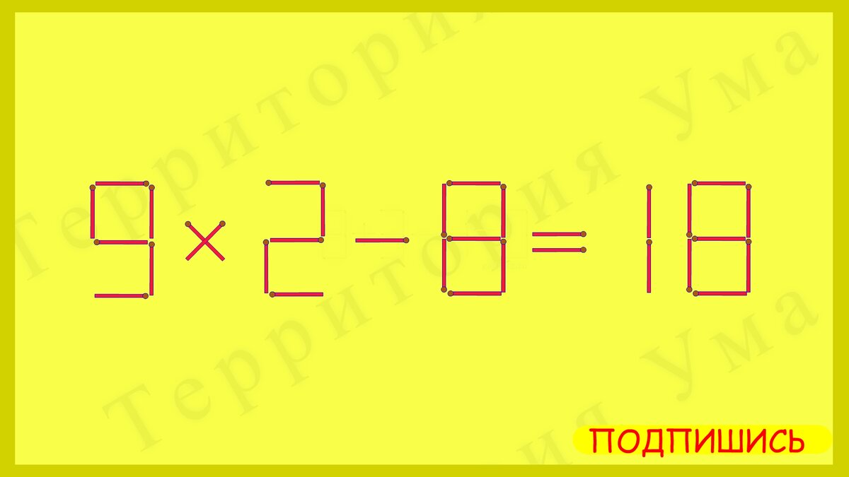 Приветствую вас на канале Территория Ума!!! Предлагаю вам решить три головоломки со спичками. В каждой необходимо переложить по две спички так, чтобы равенство стало верным. Ответы пишите в комментариях. !!! Подпишись на канал, чтобы не пропустить новые интересные головоломки!!! #головоломки со спичками #задачи на логику #тест на сообразительность Головоломка №1 Головоломка №2 Головоломка №3