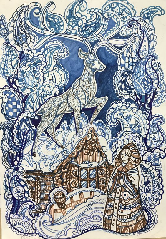 Сказы Бажова, и особенно "Серебряное копытце", дети любят с самого нежного возраста. В "Серебряном копытце" есть тайна, есть ребенок и встреча с неизвестным. Этот сказ выходит и в составе сборников, и отдельными книжечками. В 1960 году вышла книга "Серебряное копытце" с работами М.Успенской. До сих пор ее иллюстрации к этой истории считаются классическими. Здесь есть и дыхание зимы, и добрые отношения Коковани и Даренки друг к другу. Эта дверь словно приоткрывается в саму сказку. Невероятные впечатления дарила детям эта картинка. Другими иллюстраторами книги стали Александра Якобсон, О.Коровин. Н. Кочергин. Их работы и стиль известны. Но была еще одна художница, чье имя сейчас уже почти забыто - Е.Попкова, и ее рисунки любили многие дети. Вот встреча Коковани с Даренкой. У старика не осталось семьи, и он решил взять на воспитание сиротку. Кокованя рассказывает Даренке сказки. А потом расскажет и о Серебряном копытце. Серебряное копытце и Муренка. Балаган Коковани, усыпанный полудрагоце