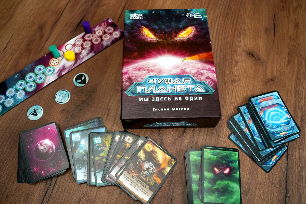 - Сдается мне, за нами кто-то следит! Чужая планета карточная игра издательства GAGA Games, для 2-7 человек, с временем игры 30-45 минут. Игра асимметричная, то есть из жанра "один против всех". Один из игроков примеряет на себя роль чудовища, другие же играют роли членов экспедиции, потерпевшей крушение на планете Артемия. Выжившие должны исследовать различные места на Артемии, стараясь не попасться в лапы чудовища, до подхода спасательной экспедиции, а чудовище должно их поймать и ассимилировать в эко систему планеты, чтобы знали, куда свой нос лучше не совать, или, может, ему просто одному скучно. В середине стола выкладываются десять карт различных мест на планете. Каждое место обладает определенным бонусом, полезным для выживших. На фото снизу, Вы можете посмотреть бонус каждого места. Выжившим на руки выдаются карты первых пяти мест планеты, дабы они смогли исследовать их в дальнейшем и получить бонусы, главное не попасться чудовищу. Так же они получают три фишки воли - их