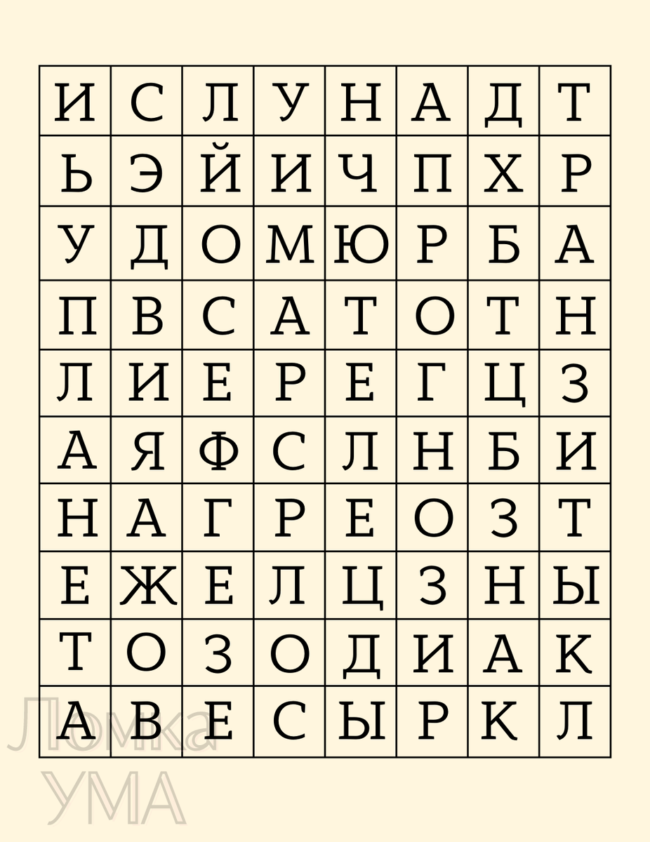 Приветствую на канале Ломка УМА! В данной головоломке представлена таблица с буквами, в которой спрятаны существующие слова. Все слова на достаточно популярную в наше время тему: АСТРОЛОГИЯ. Необходимо найти 10 слов. Они могут располагаться по вертикали и по горизонтали. Желаю удачи! У вас получилось найти все 10 слов? Если так, то напишите в комментариях эти слова, а я на правильные ответы поставлю класс! А так же подписывайтесь на канал чтобы не пропустить новые головоломки! #головоломки #найдите слово #загадки и головоломки