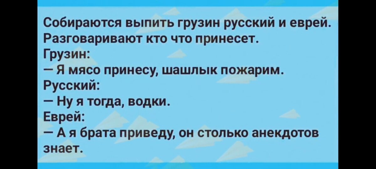 Дочка спрашивает у мамы: - Скажи, почему у моего брата такое странное имя - Икар? - Дело в том, что, когда я была беременна твоим братом, я очень любила раков. А Икар - это "раки" задом наперед. Понятно? - Понятно. Спасибо, мама. - Не за что, Лана. Кузнец держит щипцами раскаленную подкову. — Боже, какая она горячая! - восхищается крестьянин. — Да нет! - говорит кузнец. - Дадите десятку, так я ее языком оближу. — Да будет вам! Пожалейте свой язык! Hо в предвкушении необычного зрелища протянул кузнецу десятку. Кузнец облизал десятку и положил себе в карман. Игpает мальчик в песочнице. Вдpуг из окна, с 12-этажного дома напpотив,вылетает мужчина и плашмя падает в песочницу. Пыль столбом. Мальчик в шоке. Мужчина, отpяхиваясь, встаёт и говоpит: - Так, мальчик! Сейчас из этого же окна будут вылетать мудаки - а ты их будешь считать... Понял? - По-по-понял... Чеpез пять минут из того же окна вылетает мужик и плашмя падает в песочницу. Пыль столбом. Мальчик: - Раз! Мужик встаёт и,