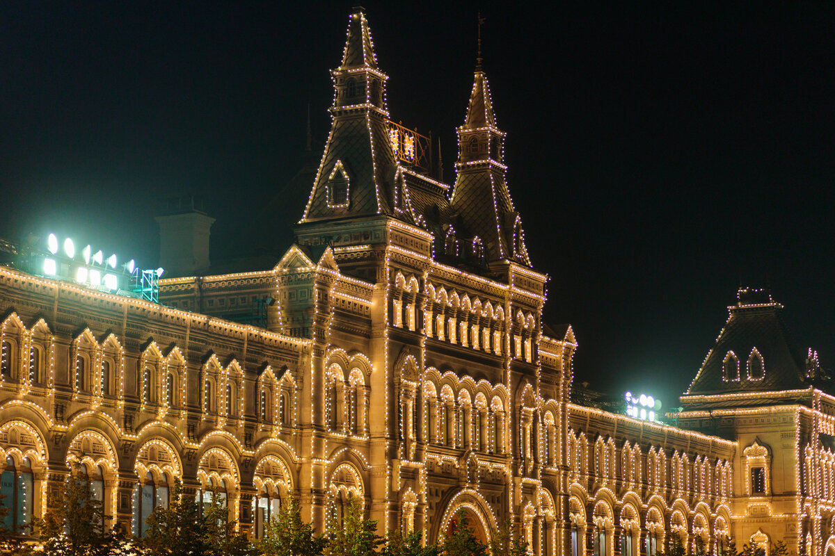 Здесь представлены лучшие (и далеко не бюджетные) бренды. Но история и архитектура здания не менее интересна, чем ювелирные украшения и сумки. Когда-то вместо современного ГУМа стояли торговые ряды. В конце XIX века произошла серьезная реконструкция и выросли Верхние Торговые ряды, а уже в 1921 году здание получило свое нынешнее название.